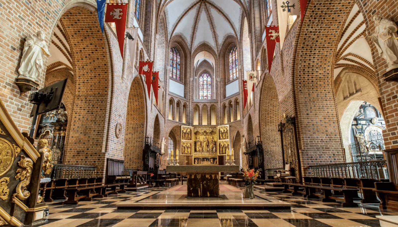 Mierząca 72 metry długości i 36 metrów szerokości nowoczesna katedra nosi ślady złożonej historii. Gotyckie ceglane ściany, gwiaździste sklepienie i ażurowe triforium w ołtarzu przywołują poczucie ponadczasowości. Południowa wieża stanowi żywe połączenie z romańską przeszłością, ukazując wieloaspektową historię tego świętego miejsca.