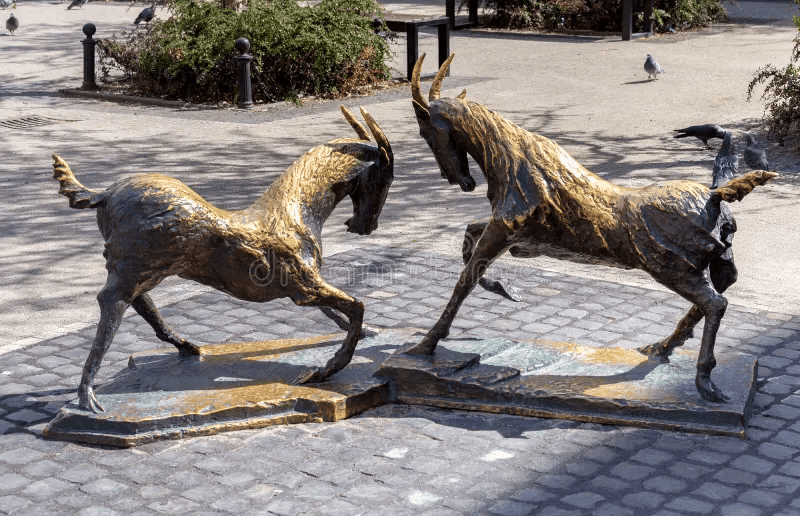 Dawno, dawno temu, w średniowieczu, jeden z zegarmistrzów o imieniu Bartłomiej stworzył duży zegar dla ratusza. Było to zlecenie Rady Miasta Poznania. Tego dnia w ratuszu przygotowywano bardzo bogaty bankiet, ponieważ spodziewano się przybycia ważnego gościa. Wybitny wojewoda poznański miał przybyć lada godzina, a w tym czasie w kuchni doszło do katastrofy. Gdy już prawie wszystko było gotowe na powitanie szanownego gościa, jeden z kucharzy, przez własne niedbalstwo, spalił na ogniu piękny udziec jelenia. Aby nikt nie zauważył tej katastrofy, kucharz ukradł dwie kozy, które pasły się na trawniku. Postanowił ugotować kozie mięso i podać je do stołu. Kozy jednak uciekły i trafiły na wieżę ratusza. Kiedy goście, a w szczególności wojewoda, zobaczyli kozy bawiące się na gzymsie nad nowym zegarem, zaniemówili. Wojewoda uznał to za zabawne i wybaczył kucharzowi jego awanturę. A zegarmistrz Bartłomiej otrzymał kolejne zlecenie – wojewoda kazał mu zmodyfikować mechanizm zegara. Od tego czasu w południe w Poznaniu rozbrzmiewa dźwięk hejnału, a na wieży pojawiają się figurki koziołków.